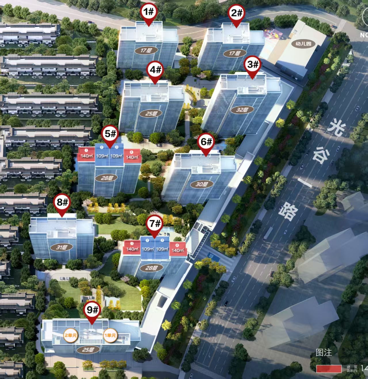融创光谷壹号院目前在售5#、6#、7#楼、精装交付、建面109-140㎡、3房到4房户型、均价18000元/㎡、总层高28层、更多楼盘动态欢迎随时致电咨询!